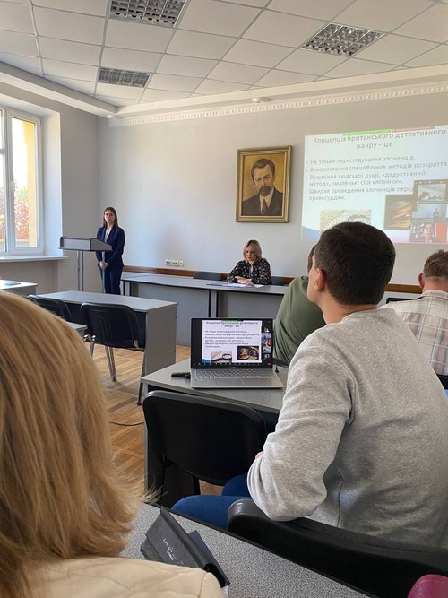 З вітальним словом до учасників звернулась декан факультету, кандидат філ.наук, доцент Олена Габелко, після якого на пленарному засіданні виступили молоді науковці з різних вишів. Так, аспірантка кафедри української та зарубіжної літератур і методик їх навчання ТНПУ ім. В. Гнатюка Собчук О.Б. розповіла про історичний детектив у британській літературі. Основними рекомендаціями щодо висвітлення історій про дітей з інвалідністю в умовах війни в Україні поділилась здобувачка першого (бакалаврського) рівня вищої освіти Волинського національного університету імені Лесі Українки Крот Х.А. Не менш актуальними були презентації студентів ЦДУ ім. В. Винниченка. Про своєрідність мережевого фольклору в контексті російсько-української війни розповіла здобувачка першого (бакалаврського) рівня вищої освіти Сметанко М.О., про специфіку прагматичного потенціалу англійської парентези дізнались з доповіді здобувачки магістерського рівня вищої освіти Камінської О.О., а особливості відтворення японських реалій в англо-українському художньому перекладі розкрила здобувачка другого (магістерського) рівня вищої освіти Ручко К.В.