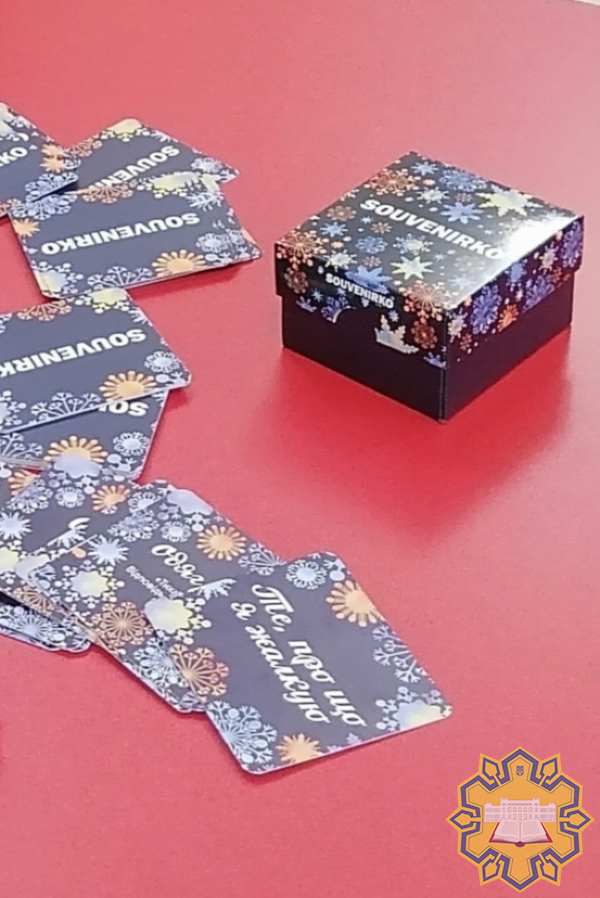 Завершили настільною картковою грою "SOUVENIRKO". Пригадали цікаве за рік, отримали позитивні емоції від несподіваності й швидкості реагування на запитання, повеселились від душі.