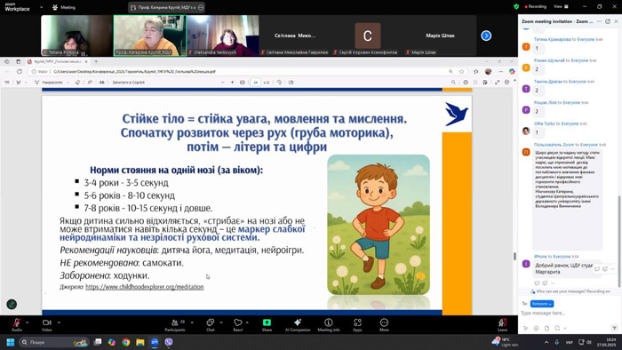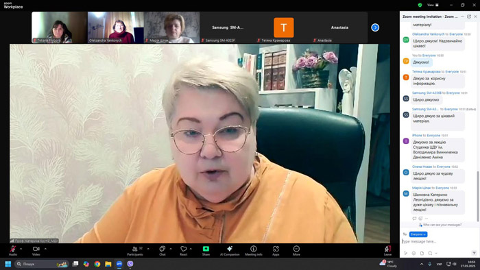 27 травня 2025 року відбулася надзвичайно пізнавальна й актуальна подія для студентів спеціальності 012 /А2 «Дошкільна освіта» – відкрита лекція, яку в онлайн-форматі Zoom прочитала відомий науковець, професор Маріупольського державного університету, доктор педагогічних наук, автор численних праць із проблем дошкільної освіти Катерина Леонідівна Крутій. Захід було організовано для студентів денної та заочної форми навчання, і він проходив в інтерактивному форматі, що дало можливість учасникам не тільки отримати теоретичні знання, а й активно взаємодіяти з лекторкою, ставити запитання, ділитися власними спостереженнями та педагогічним досвідом.