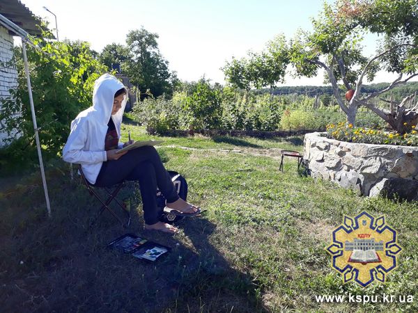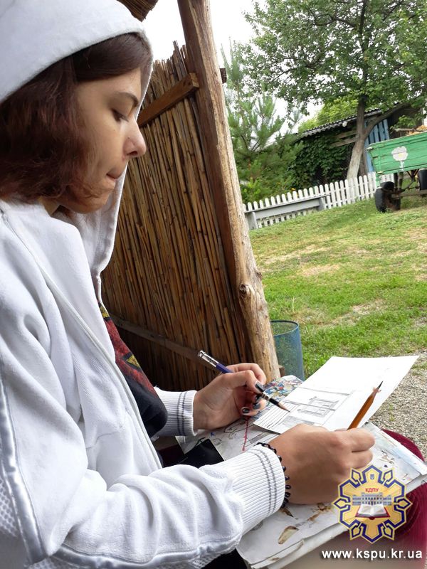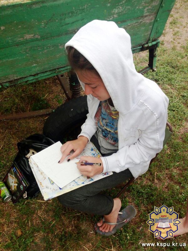 З цілковитою впевненістю можна сказати: літня практика вдалась на славу! Надзвичайно мальовничі місця відкривалися зацікавленому погляду, варто було нам тільки «переступити поріг» садиби. В українському стилі оздоблені «шевченківські» хатки – два будинки, у яких ми проживали, – невпинно надихали нас на створення безлічі етюдів, начерків та зарисовок, малювали ж ми іноді, навіть не виходячи зі своїх кімнат: так і хотілося замалювати якомога більше мальованих глечиків та немало інших старовинних предметів інтер’єру. Ставок, ліс, нескінченні поля пшениці та інших зернових культур, незліченна кількість різноманітних трав, дерев та кущів, квітів, ягід, навіть садок, старі сільські вулиці та незабутні схід та захід сонця – усе це оточувало нас щодня, закликало до того, щоб зафіксувати всю цю красу хоча б на якомусь клаптику паперу.