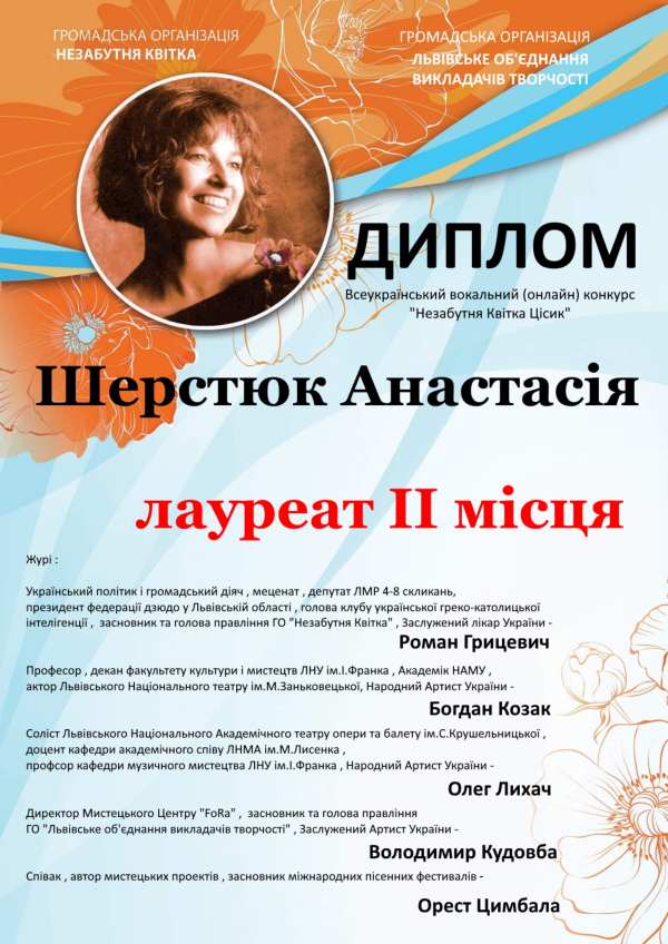 Щиро вітаємо переможців та їхніх викладачів з перемогою на Міжнародному фестивалі-конкурсі музикантів-виконавців «Музичний дивоцвіт» у Кривому Розі, бажаємо подальших успіхів, вдосконалення вокальних та інструментальних навичок, популяризації кращих зразків світової та української музики!
