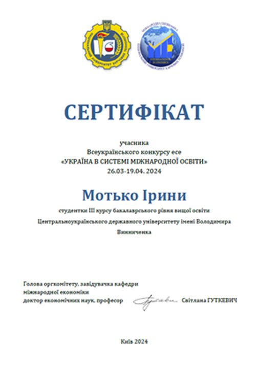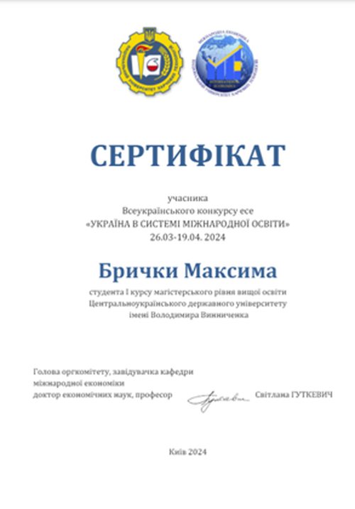 Перемога на Всеукраїнському конкурсі есе “Україна в системі міжнародної освіти”