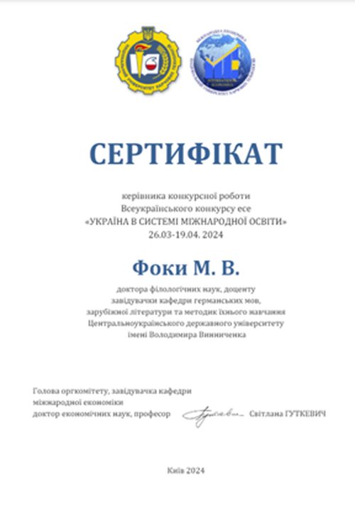 Науковий керівник – доктор філологічних наук, професор Фока Марія Володимирівна