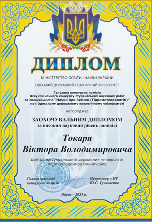 Всеукраїнський конкурс студентських наукових робіт зі спеціальності “Науки про землю (Гідрометеорологія)”