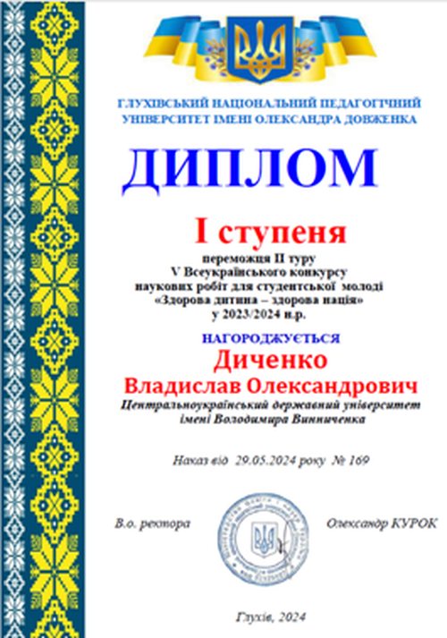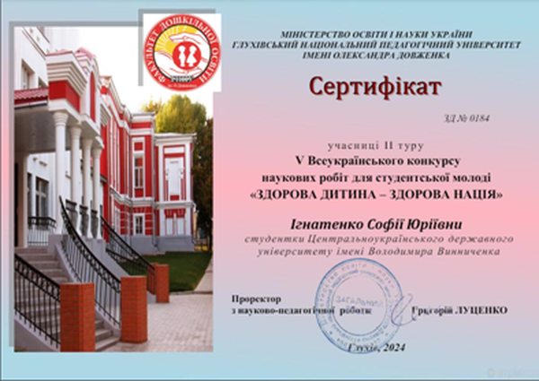 Диплом І ступеня на V Всеукраїнському творчому конкурсі студентської молоді “Здорова дитина – здорова нація”