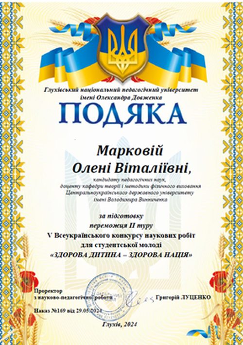 Науковий керівник – кандидат педагогічних наук, доцент Маркова Олена Віталіївна