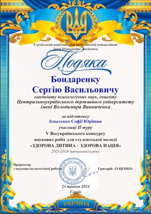 Науковий керівник – кандидат педагогічних наук, доцент Бондаренко Сергій Васильович