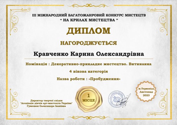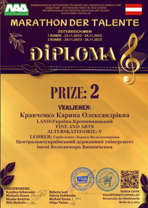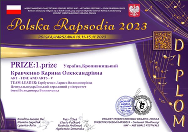 Диплом за зайняте третє місце на Міжнародному конкурсі комп’ютерної графіки та вебдизайну “CreDiCo”- 2023