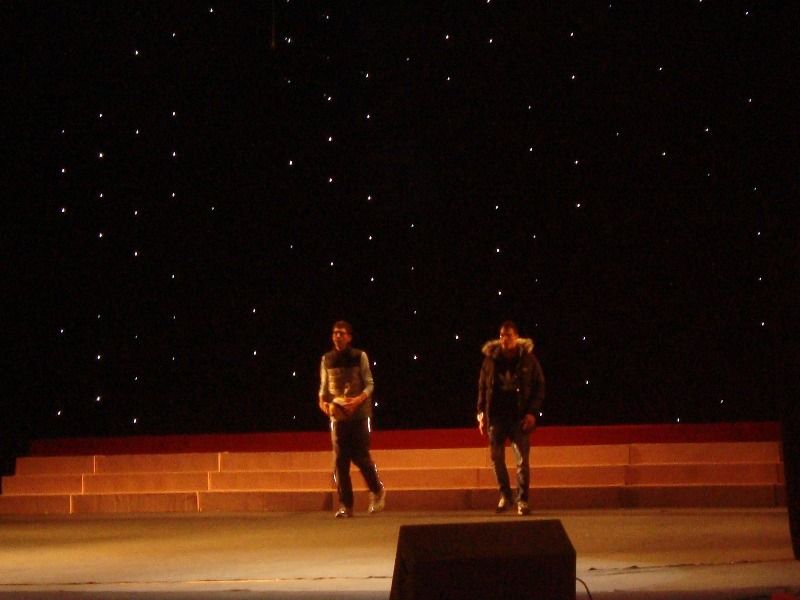 Юнаки виходили на сцену тричі і кожного разу зривали шквал оплесків. Під час першого виходу вони представляли нову колекцію стильного спортивного одягу від магазину «Adidas».