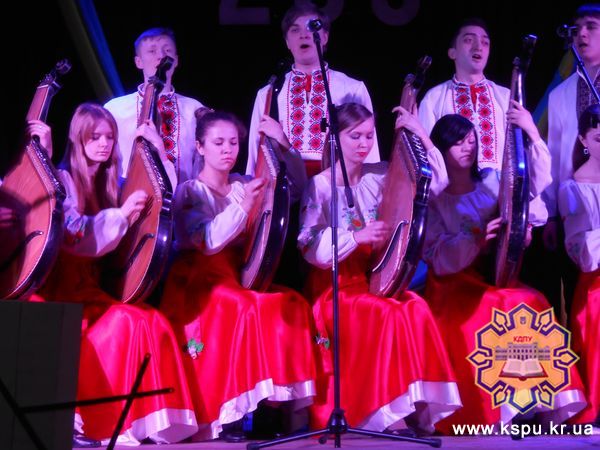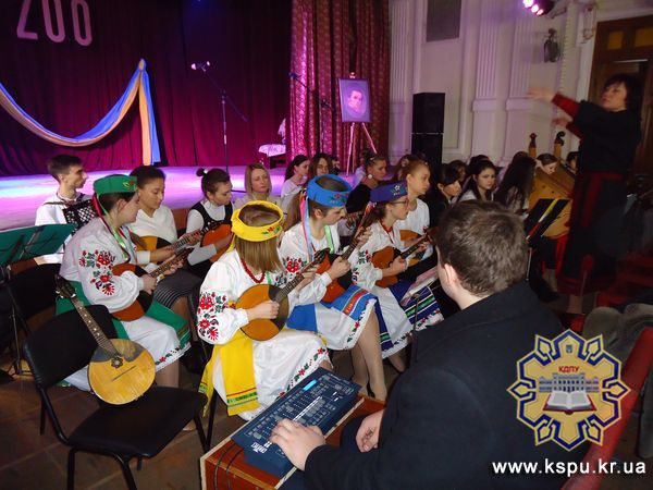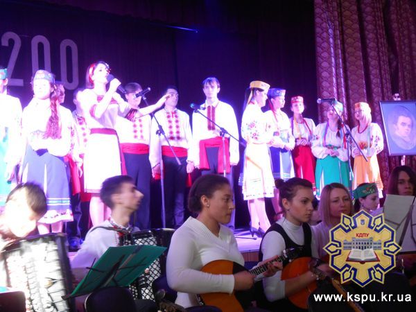 Апогеєм святкувань став концерт за участю окремих студентів з різних факультетів, колективів мистецького факультету та молодіжного центру. Лунали і сильні рядки поезії, і пісні, й мелодії. Декламували вірші лауреати обласного конкурсу Валерія Руссу та Олександра Крикун і володарка гран-прі конкурсу Ксенія Ноговіцина. Зачарував своєю грою на скрипці студент мистецького факультету Олександр Шерстюк. Одним цілим музичним організмом був оркестр народних інструментів «Степові зорі» та народний хор «Дивоспів» (керівники З.М. Стукаленко та Н.Т. Мєдвєдєва). Затамувавши подих глядачі слухали музичні твори написані на слова Т. Шевченка, а саме: «Зоря моя вечірняя», солісти Тетяна Михайліна і Тетяна Кондратенко, «Утоптала стежечку» солісти Надія Гевель та Олена Табак. Особливо публіка вподобала хоровий твір написаний композитором В. Захарченком «Вітре буйний», де заспівувала солістка Національного заслуженого академічного народного хору України імені Г. Верьовки Оксана Сергєєва. І дійсно, їх спів – просто диво. А твір «Реве та стогне Дніпр широкий» у виконанні того ж хору «Дивоспів» та оркестру «Степові зорі» глядачі слухали стоячи.
