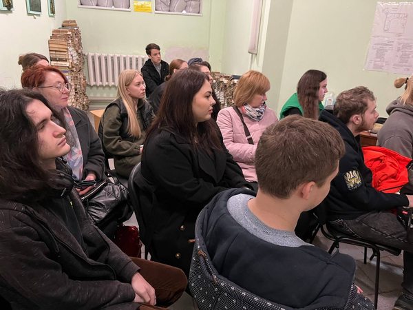 На лекціях професора Осборна, котрі були присвячені травмаінформованому мистецтву та арт-комунікаціям, цього разу були присутні не тільки наші студенти-музиканти. З метою ознайомлення з досвідом нашої роботи за авторською методикою всесвітньо відомого професора з Единбургу до нас приєдналися високоповажні гості: завідувачка кафедри соціально-гуманітарних дисциплін факультету підготовки Донецького державного університету внутрішніх справ, доцентка Анжела Гельбак зі своїми колегами та студентами-психологами, а також дійсний член Національної психологічної асоціації України та Всеукраїнської Арт-терапевтичної організації пані Оксана Молчанова. Зазначу, що, незважаючи на те, що під час лекції прозвучала тривога, всі присутні дуже швидко й організовано перейшли в укриття й затамувавши подих продовжували слухати доповідь професора Найджела Осборна. Ми висловлюємо велику подяку асистентці кафедри перекладу, прикладної та загальної лінгвістики, Кірі Ручко, яка забезпечила відмінний переклад змісту лекцій професора.