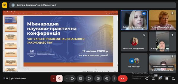 17 квітня 2025 року на факультеті історії, бізнес-освіти та права Центральноукраїнського державного університету імені Володимира Винниченка відбулася Міжнародна науково-практична конференція «Актуальні проблеми національного законодавства».
