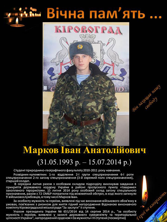26 вересня 2014 року на природничо-географічному факультеті відкрили стенд пам'яті студентам, які загинули під час антитерористичної операції.