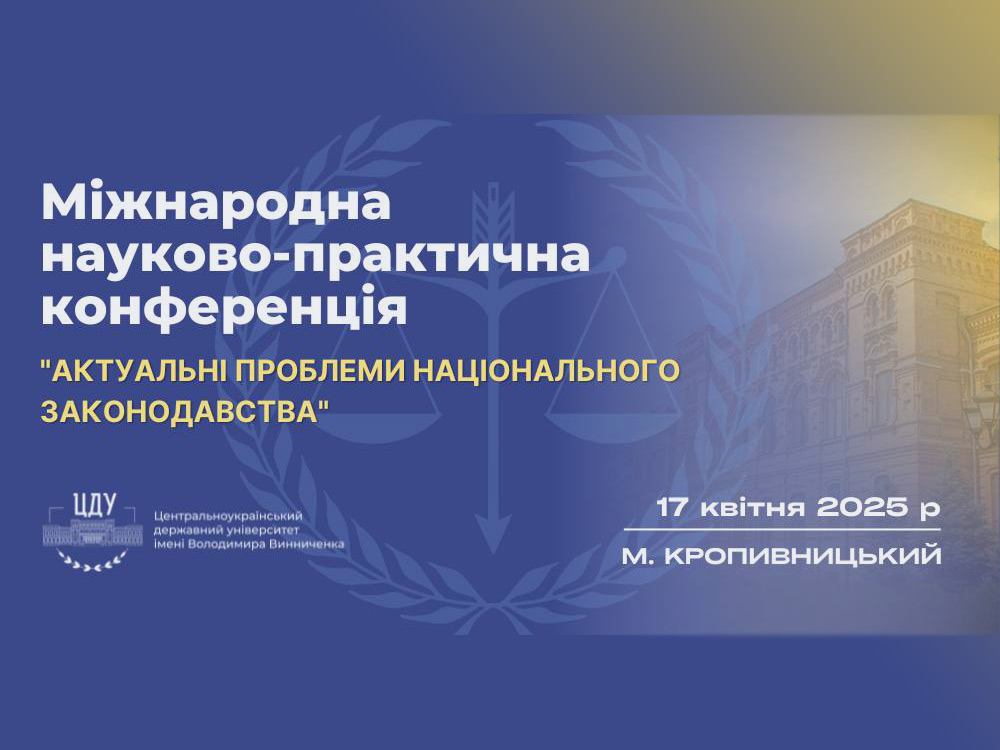 17 квітня 2025 року на факультеті історії, бізнес-освіти та права Центральноукраїнського державного університету імені Володимира Винниченка відбулася Міжнародна науково-практична конференція «Актуальні проблеми національного законодавства».