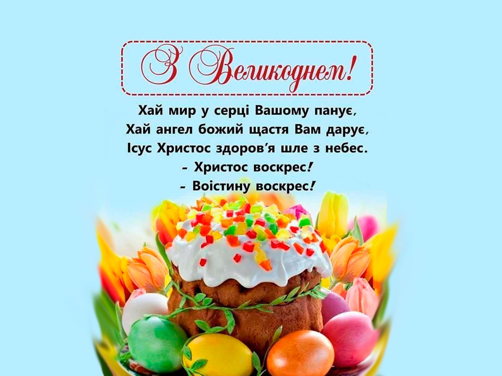 Великдень – це особливий час оновлення, надії та віри. Це свято нагадує нам про незламність духу, силу любові та безмежне прагнення до добра. Нехай великодня радість наповнює ваші серця світлом, а віра в нашого Спасителя зміцнює у щоденних справах, надихає на нові звершення та дарує силу долати будь-які виклики.