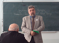 14 березня студенти-філологи КДПУ ім. В. Винниченка знову мали можливість насолодитися шматочком творчого пирога від відомого українського письменника, поета, публіциста, політичного та громадського діяча Володимира Федоровича Шовкошитного. Цього разу він прибув не сам, а з колегами та соратниками по творчій майстерні: кіровоградським поетом Олександром Косенком та письменницею й літературознавцем, кандидатом філологічних наук Ларисою Лебедівною. Перше слово взяв Олександр Косенко, з яким Володимир Федорович познайомився лише декілька місяців тому, але вже встиг видати книгу кіровоградця в київському видавництві «Український пріоритет», директором якого він є.