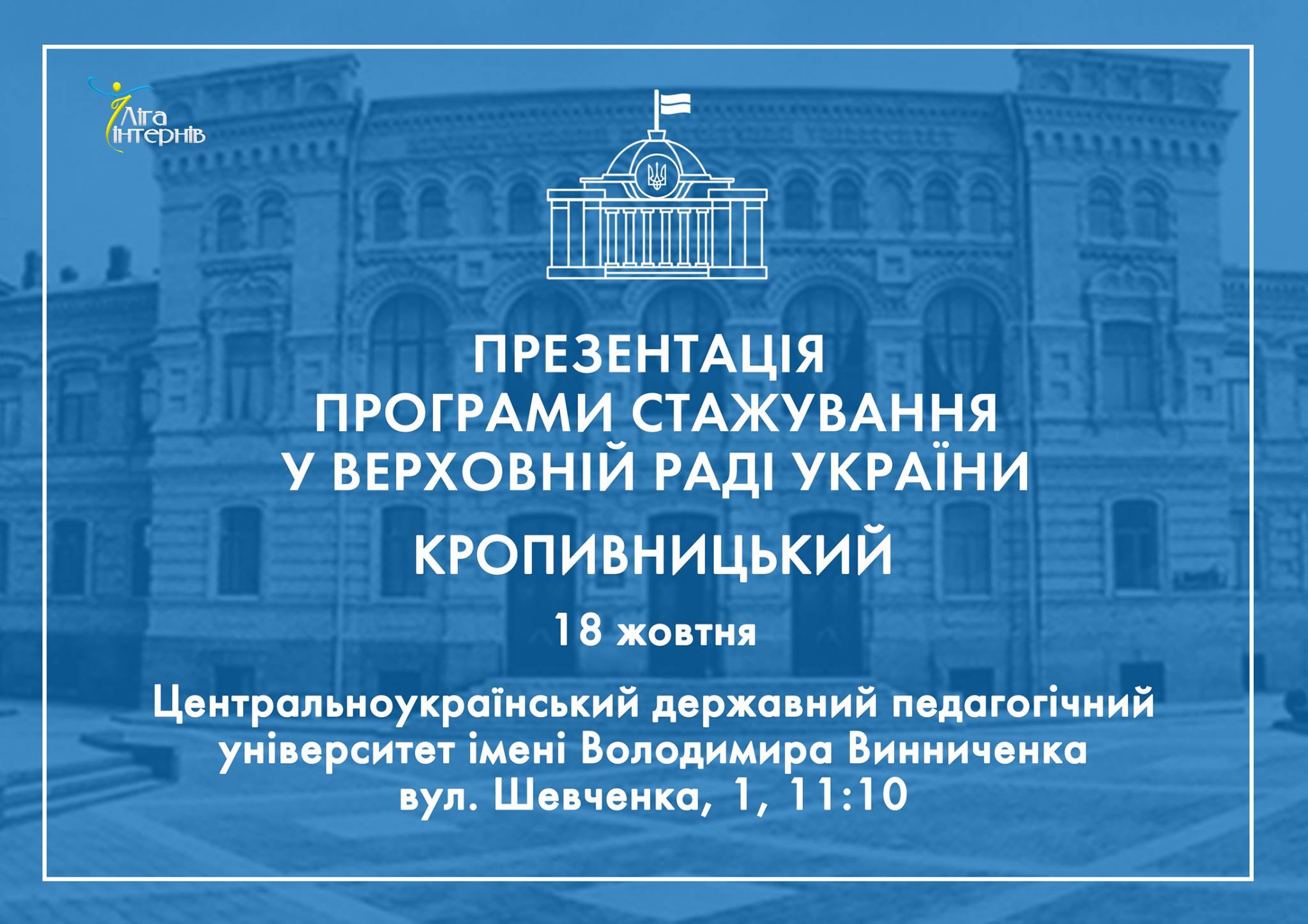 18 жовтня на базі Центральноукраїнського державного педагогічного університету імені Володимира Винниченка відбулася зустріч викладачів та студентів факультету історії та права з представниками громадської організації «Ліга інтернів».