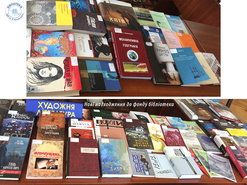 Шановні користувачі, пропонуємо нові видання, що надійшли до нашої бібліотеки. Запрошуємо відвідати бібліотеку, ознайомитися з новинками та обрати книги:
