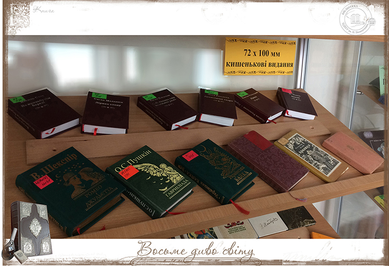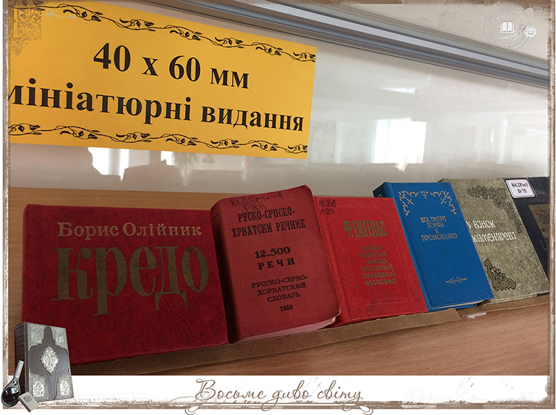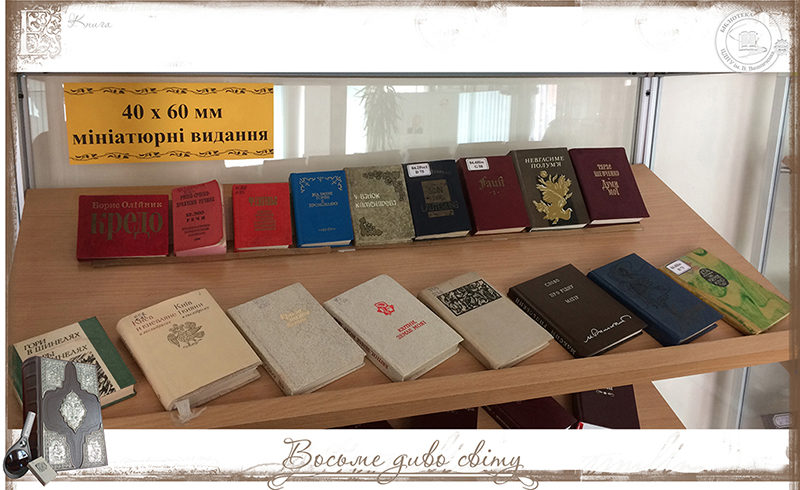 До уваги поціновувачів Книги неймовірні книжкові експонати, які відомі в бібліології під назвою «мініатюрні видання». Відмінною ознакою таких видань є висота і ширина сторінки, яка складає 15х20 мм – мікрокниги, 40х60 – мініатюрні видання, 72х100 мм – кишенькові видання.