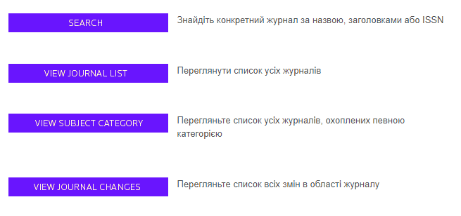 - здійснити пошук за назвою, ISSN, видавництвом;