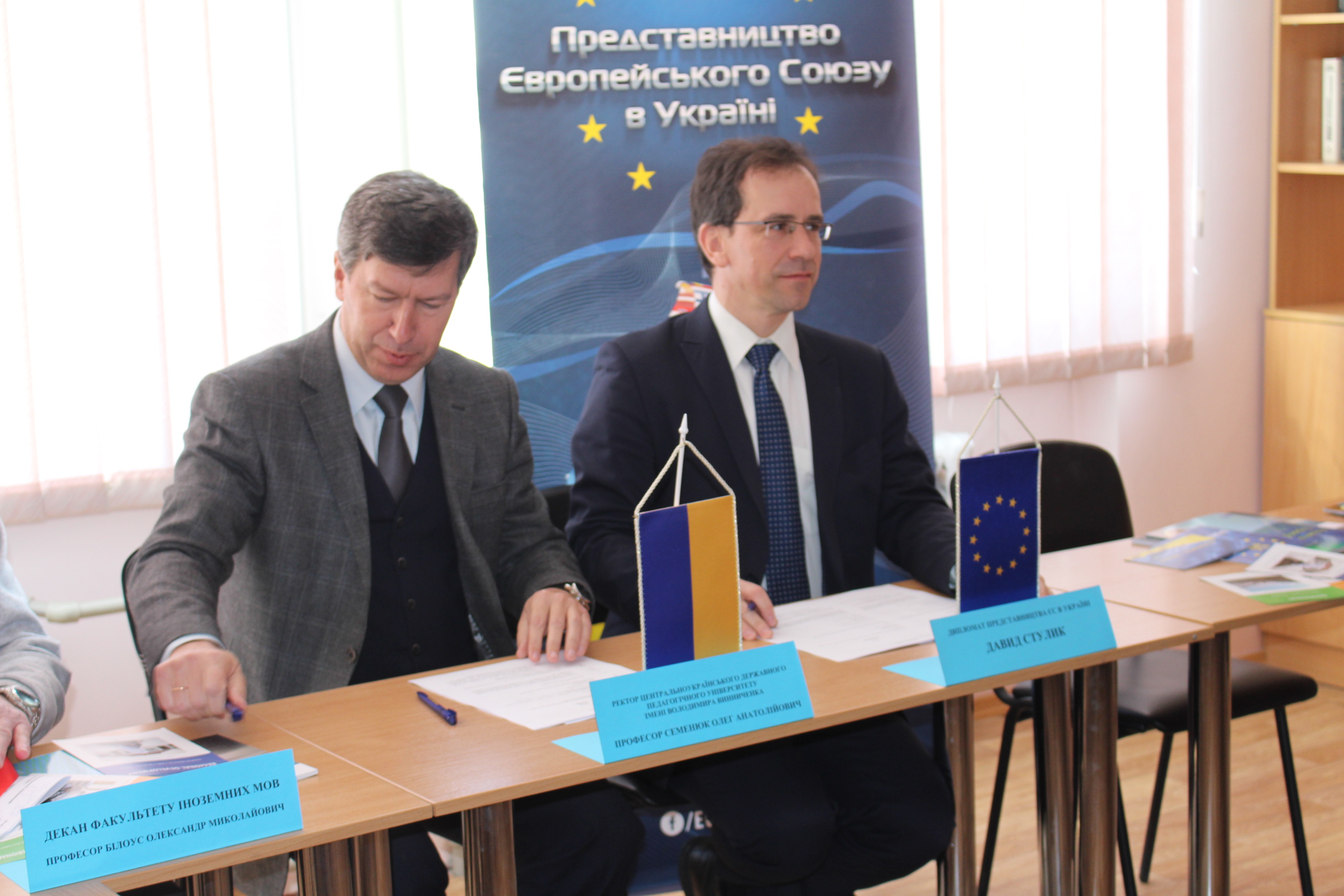 5 березня 2018 року у м. Кропивницькому відбулася небуденна подія. На базі Центральноукраїнського державного педагогічного університету імені Володимира Винниченка було урочисто відкрито Інформаційний центр в Кірогвоградській області представництва Європейського Союзу в Україні та підписано договір про співпрацю.