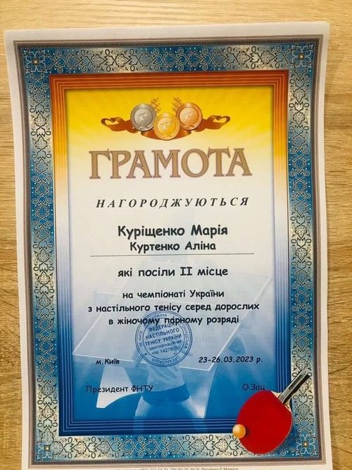 23–26 березня 2023 року у Києві проходив чемпіонат України з настільного тенісу серед дорослих. У цих змаганнях брала участь студентка факультету фізичного виховання групи СП20Б, майстер спорту України Марія Куріщенко.