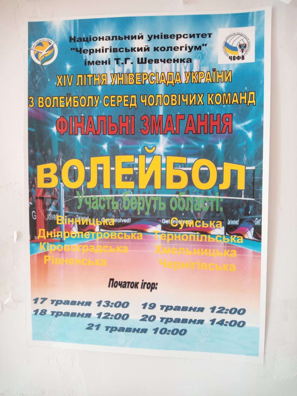Нещодавно місто Чернігів приймало учасників фінальних змагань XIV літньої Універсіади України з волейболу серед чоловіків. Ключовими гравцями у командах були гравці вищої та суперліги. Виїзд команди нашої області на ці змагання став дебютним.