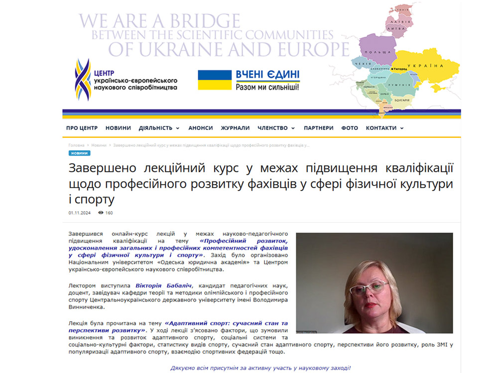 Завершився онлайн-курс лекцій у межах науково-педагогічного підвищення кваліфікації на тему «Професійний розвиток, удосконалення загальних і професійних компетентностей фахівців у сфері фізичної культури і спорту».