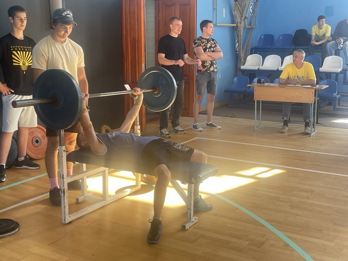 Жим штанги лежачи приймали участь студенти: Дьяк В. (ФК24Б), Анапченко Є. (ФК23Б), Козак І. (ФК23БІ), Горін Д. (СП24Б), Білоусов О. (ФК24Б), Милов Р. (ФК24Б), Стращов С. (ГК24Б), Тротяк І. (ІСТ23Б), Цабій Н. (СП25Б), Карпов Д. (СП25Б), Ісаков О. (ФК23Б2).
