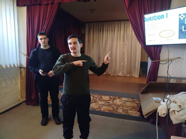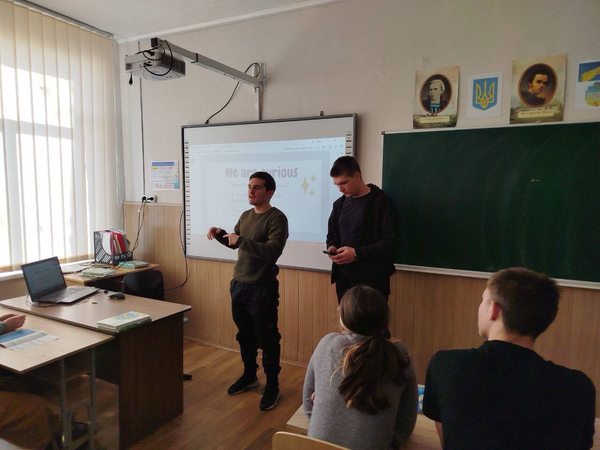Так, Нікіта Алексєєв та Ілля Латій провели пізнавальну вікторину про британський та американський варіанти англійської мови, а Валерія Ніколаєва, випускниця цього ліцею, поділилася враженнями від навчання в університеті, розповіла про спеціальності, які можна тут опанувати, і дала поради щодо успішної підготовки до НМТ.