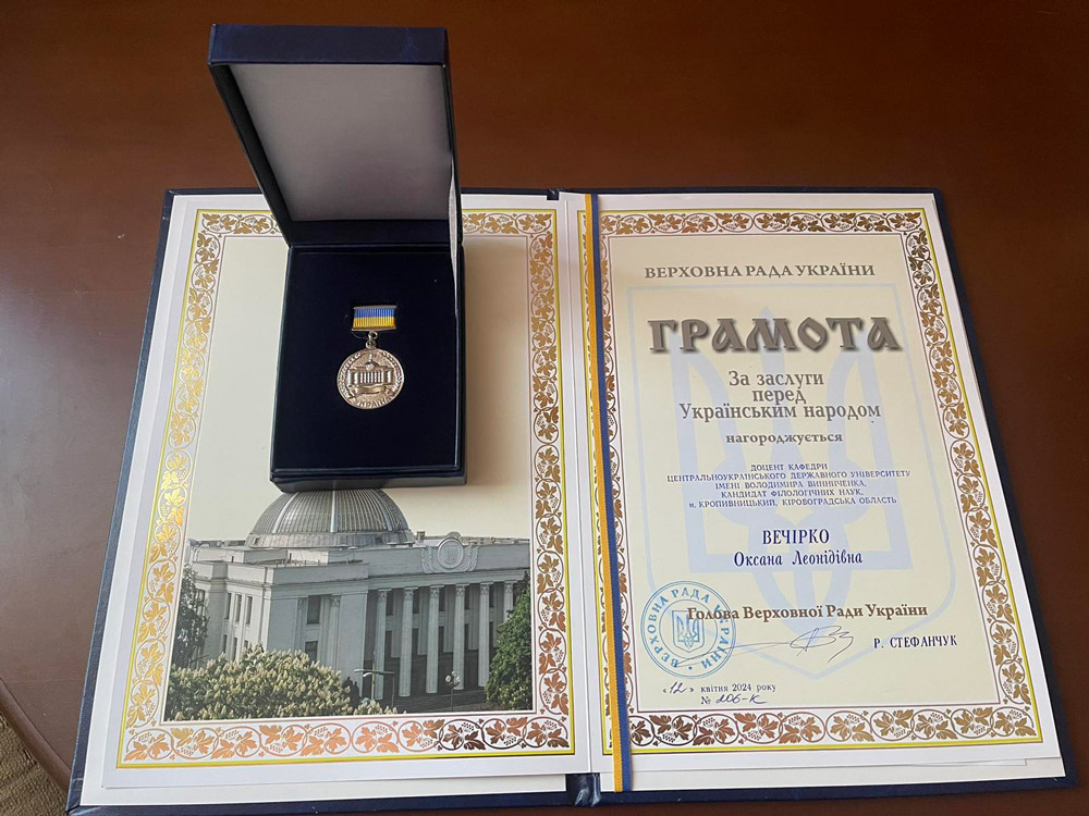 Колектив Центральноукраїнського державного університету імені Володимира Винниченка від щирого серця вітає кандидата філологічних наук, доцента кафедри германських мов, зарубіжної літератури та методик їхнього навчання Оксану Леонідівну Вечірко з отриманням Грамоти Верховної Ради України «За заслуги перед Українським народом»!
