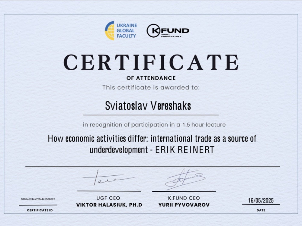 14 травня 2025 року здобувача першого (бакалаврського) рівня вищої освіти групи МЛ22Б спеціальності 073 «Менеджмент»Ланцова Володимира було нагороджено грамотою за високі досягнення у науково-дослідницькій діяльності з нагоди Дня науки.