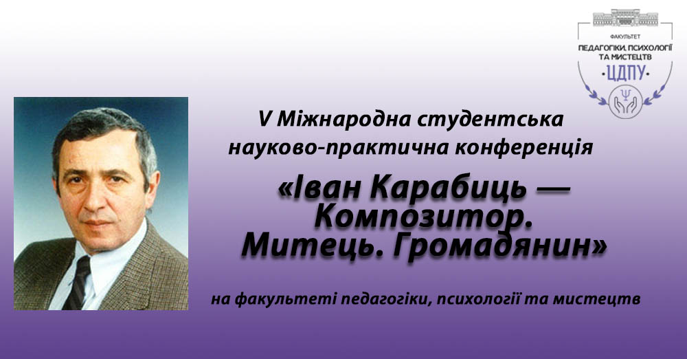 19 травня 2022 року на факультеті педагогіки, психології та мистецтв у дистанційному форматі відбулася V Міжнародна студентська науково-практична конференція «Іван Карабиць — Композитор. Митець. Громадянин», присвячена 20-річчю вшанування пам’яті митця. Мета конференції — активізація наукового мислення, творчо-інтерпретаційного потенціалу й художньої культури студентів у процесі дослідження й презентації музично-творчого доробку видатного українського композитора ХХ століття, диригента, педагога, музично-громадського діяча, народного артиста України, професора Національної музичної академії України імені Петра Чайковського Івана Федоровича Карабиця.