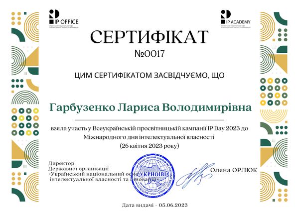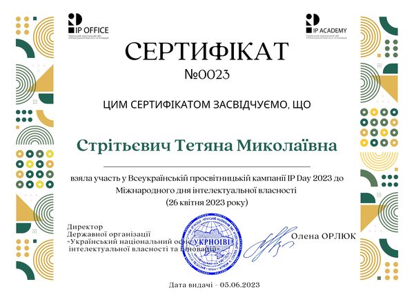 За результатами кампанії IP Day 2023 викладачі кафедри були відзначені сертифікатами.