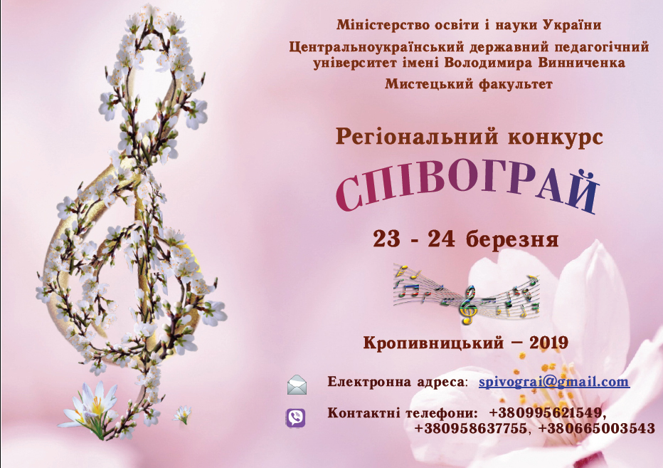 23-24 березня на мистецькому факультеті Центральноукраїнського державного педагогічного університету ім. Володимира Винниченка відбувся І Регіональний конкурс музичного мистецтва «СПІВОГРАЙ».