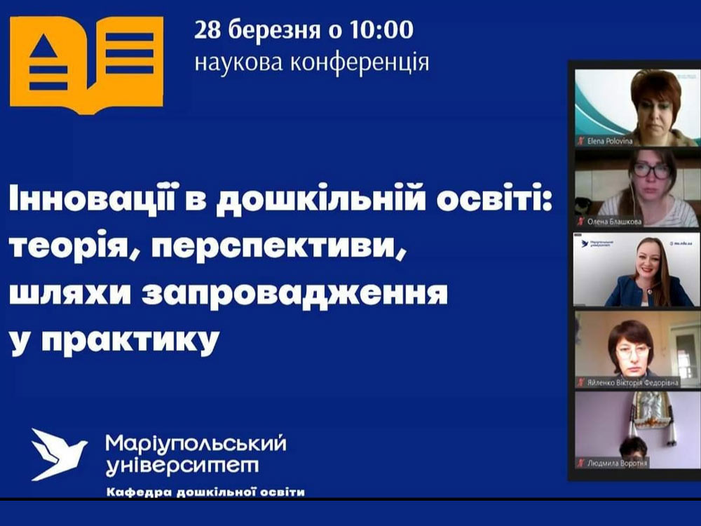 28 березня 2024 року о 10:00 викладачі кафедри дошкільної та початкової освіти і студенти спеціальності 012 Дошкільна освіта взяли участь у ІІІ Всеукраїнську науково-практичну конференцію «Інновації в дошкільній освіті: теорія, перспективи, шляхи запровадження у практику», що проводилась Маріупольським державним університетом.