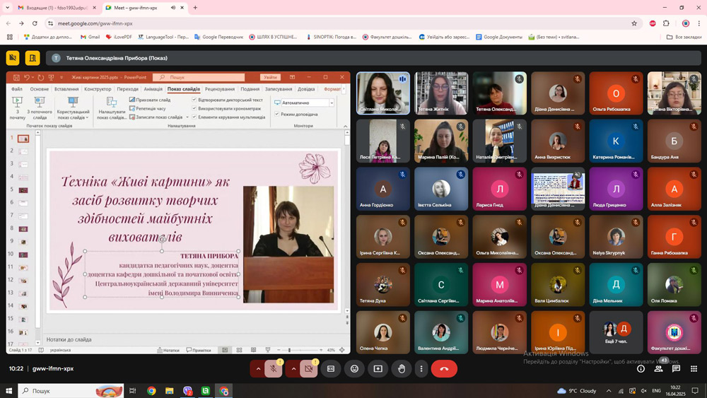 У 16 квітня 2025 р. у межах V Всеукраїнської науково-практичної конференції з міжнародною участю «Професійна підготовка майбутніх фахівців закладів дошкільної освіти до педагогічної творчості в контексті тенденцій розвитку освіти» було презентовано авторську методику «Живі картини» доцентом кафедри дошкільної та початкової освіти ЦДУ ім. В. Винниченка Приборою Т. О., що передбачає креативне осмислення та інтерпретацію мистецьких творів у освітньому процесі.