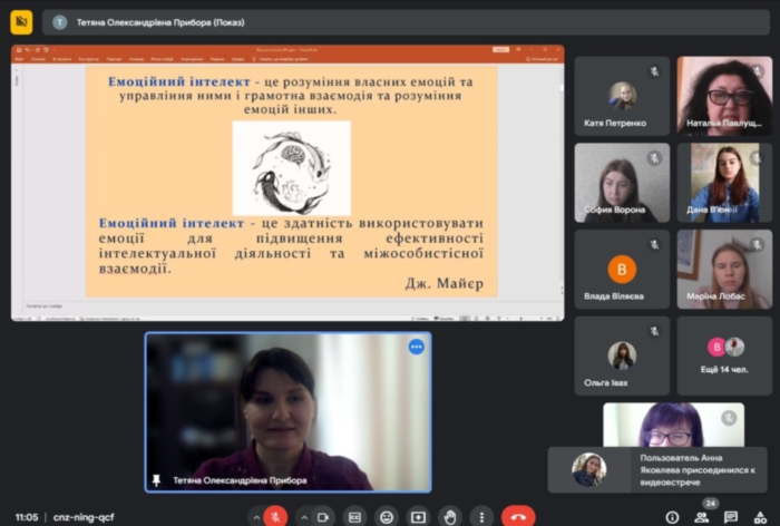 Студенти разом з викладачами долучилися до лекції на тему: «Сучасні техніки розвитку емоційного інтелекту дітей дошкільного віку» кандидата педагогічних наук, доцента, доцента кафедри дошкільної та початкової освіти Центральноукраїнського державного університету імені Володимира Винниченка Тетяни ПРИБОРИ.