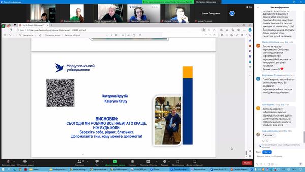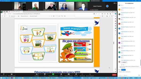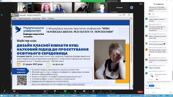 В межах вивчення дисципліни «Педагогічна ергономіка» студенти спеціальності 013 Початкова освіта відвідали майстер-клас, який проводила доктор педагогічних наук, професор, професор кафедри дошкільної освіти Маріупольського державного університету, автор освітніх програм для закладів дошкільної освіти «Стежинки у Всесвіт», STREAM-освіта Катерина Крутій на тему: «Дизайн класної кімнати НУШ: науковий підхід до проєктування освітнього середовища»