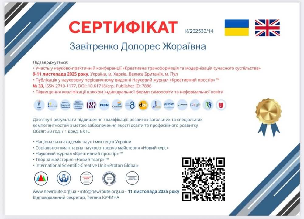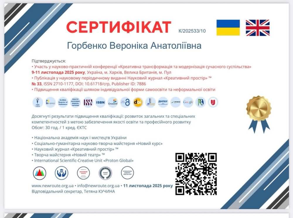 Участь студентів-науковців у конференції «Креативна трансформація та модернізація сучасного суспільства» 9-11 листопада 2025 року Україна, Велика Британія, м.Пул.