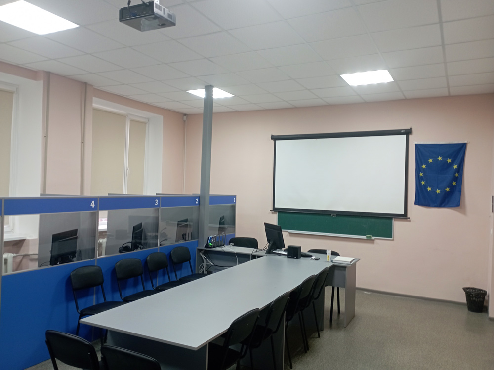 Нова лабораторія усного перекладу кафедри перекладу, прикладної та загальної лінгвістики (ауд. 304 в корпусі № 5) розпочала свою роботу у вересні 2023 року. Передусім, вона розрахована для потреб спеціальності 035 Філологія 035.041/043 Германські мови та літератури (переклад включно).