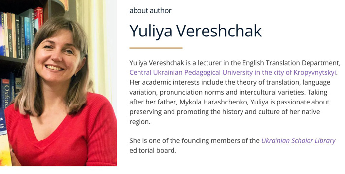 Нещодавно австралійське книговидавництво Sova Books (https://sovabooks.com.au ) опублікувало нову книгу Sumtsov, M 2025, "Exploring Ukrainian Folk Tales: A Study of the Polish Collections of Kolberg and Moszynska", Sydney, Sova Books, до складу редакторів якої входила й викладачка кафедри перекладу, прикладної та загальної лінгвістики Юлія Верещак. Ukrainian Scholar Library – важливий багаторічний проєкт видавництва «Sova Books», і за словами викладачки, має важливе значення для збереження нашої історії та культури. Юлія Верещак пишається тим, що разом із татом Миколою Гаращенком, учителем та знаним у області краєзнавцем, долучилася до створення багатьох видань від «Sova Books».