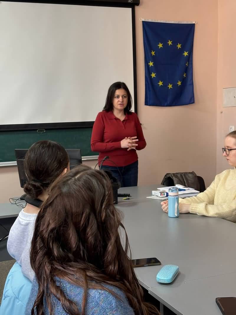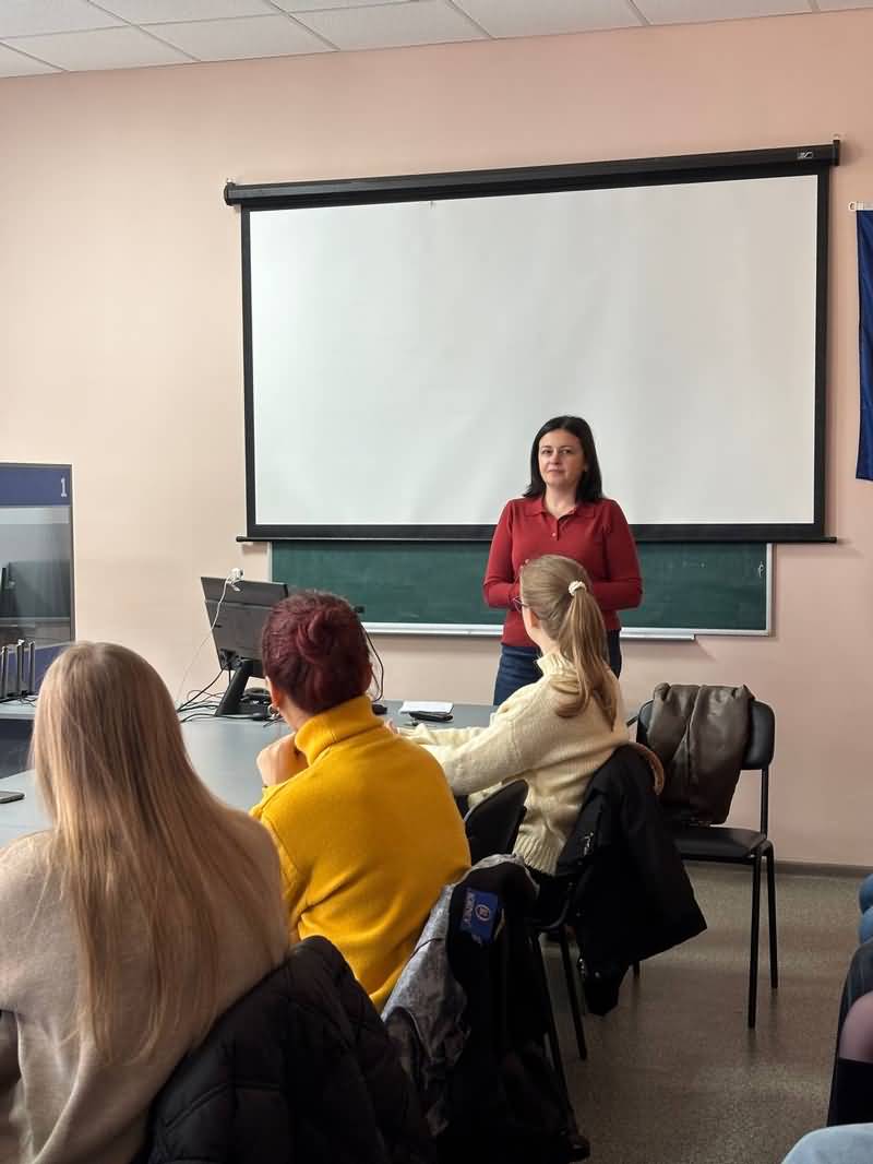 Цього разу старшокурсникам випала нагода поговорити з Наталею Шульгою, випускницею нашого університету, освітянкою і перекладачкою, хоча сама пані Наталя свою роботу воліє називати language assistance. Вона забезпечує міжмовну комунікацію на стику письмового перекладу, усного перекладу-супроводу (community interpreting) і фактичного фіксерства, тобто координації іноземців на місці, що включає проактивне спілкування, вирішення питань логістики й побуту, убезпечення комунікації з представниками місцевих громад тощо. До агресії РФ пані Наталя активно співпрацювала з регулярними місіями Бюро ОБСЄ з демократичних інститутів та прав людини (osce/odihr), які спостерігали за проведенням виборів в Україні, в від найперших днів збройної агресії і по сьогоднішній день — з представництвами великих міжнародних гуманітарних організацій, які опікуються питаннями медичної допомоги постраждалим від російської агресії, підтримки переміщених осіб і надають іншу доброчинну допомогу нашій країні.