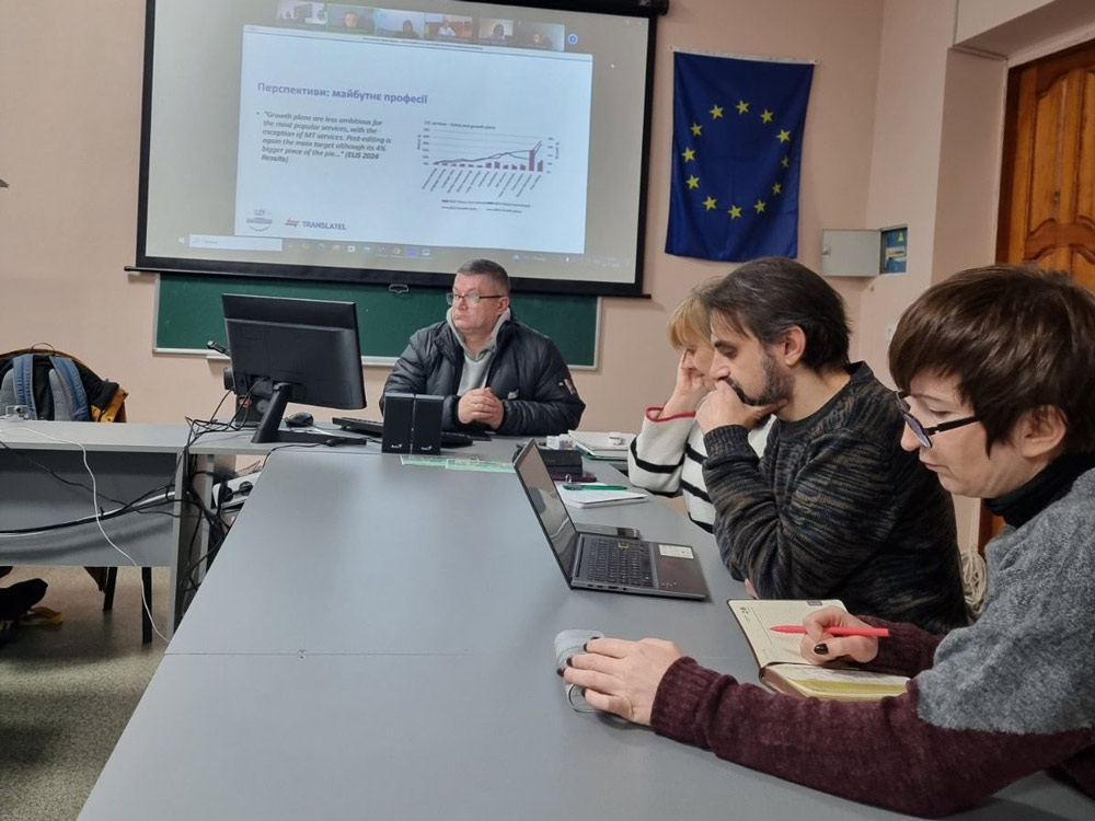 23 грудня 2024 року відбулася онлайн зустріч зі стейкхолдером освітньо-професійної програми «Філологія (Германські мови та літератури (переклад англійська та німецька мови включно))» другого (магістерського) рівня вищої освіти за спеціальністю 035 Філологія спеціалізацією 035.041 Германські мови та літератури (переклад включно), перша – англійська, старшим неключовим експертом з перекладу проєкту «Підтримка впровадження Угоди про асоціацію між Україною та ЄС» (Association4U - A4U) Тетяною Черевик зі студентами-магістрантами та студентами 4го курсу бакалаврату на тему перекладу актів права ЄС у контексті євроінтеграції України.