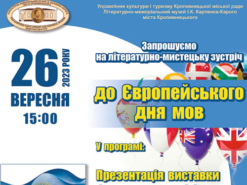 26 вересня 2023 року в Кропивницькому відбувалася низка заходів до Європейського дня мов. Зокрема, в стінах Літературно-меморіального музею І. К. Карпенка-Карого пройшла літературно-мистецька зустріч, присвячена творчості наших літераторів-земляків у перекладах мовами європейської спільноти: Володимира Винниченка, Ярослава Івашкевича, Ольгерда Бочковського, Євгена Маланюка, Юрія Яновського, Василя Козаченка, Сави Голованівського, Людмили Скирди, Віктора Близнеця, Костянтина Оверченка, молодого покоління — Надії Гармазій, Станіслава Новицького, Аліни Шевченко та інших.