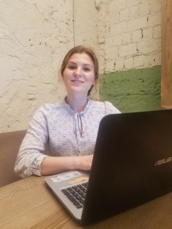 З 2014 під час проходження магістратури почала працювати перекладачем в компанії з експорту продуктів харчування. Мала справу з письмовим перекладом науково-технічної літератури, ділової документації, рекламних текстів та бізнес-кореспонденції. Практикувала усний послідовний переклад на ділових зустрічах, телефонних конференціях та презентаціях компанії.