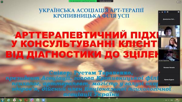 17 листопада 2021 студенти четвертого курсу факультету педагогіки, психології та мистецтв і другого та третього курсу факультету української філології, іноземних мов та соціальних комунікацій прийняли участь у науково-практичному вебінарі «Особливості консультування клієнтів в умовах пандемії COVID-19», проведеному під егідою Кропивницької філії Української Спілки Психотерапевтів та Української Асоціації Арттерапії.