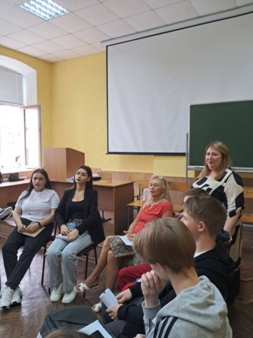 Професорки Помиткіна Л. В. та Кокарєва А. М. провели зі здобувачами вищої освіти психологічний тренінг «Психологічна адаптація та подолання прокрастинації студентської молоді в умовах воєнних дій». Під час роботи Помиткіна Л. В. спільно зі студентами проаналізувала зміст успішності навчального процесу та можливості адаптації здобувачів вищої освіти до сучасних реалій, зосередила увагу на тому, що трансформаційні зміни залежить не тільки від того якими можливостями вони володіють, але й від їхньої готовності своєчасно використовувати ситуації, що вимагають термінового прийняття рішень і здійснення конкретних дій. У груповій роботі тренерка Помиткіна Л. В. акцентувала увагу, що схильність до прокрастинації загрожує психологічному благополуччю людини, детермінує стрес, почуття провини та зниження продуктивності, призводить до гострих емоційних переживань особистої невдачі, особливо в умовах воєнних дій.