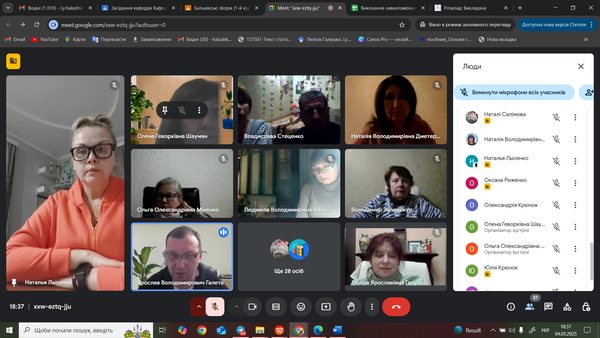 Далі діалог з батьками продовжила в. о. завідувачки кафедрою, доцентка Любов Галушко, яка представила присутніх викладачів кафедри і детально зупинилася на всіх аспектах навчання. Потім про спеціальність психологів до батьків звернулася гарантка ОП Психологія (практична психологія) доцентка Наталія Дметерко. Виступила старша викладачка Людмила Калашникова, розказавши про відвідуваність та успішність студентів із дисципліни «Загальна психології». Представлено інформацію для батьків кураторами перших курсів доценткою Оленою Шаумян і доценткою Ольгою Міненко.