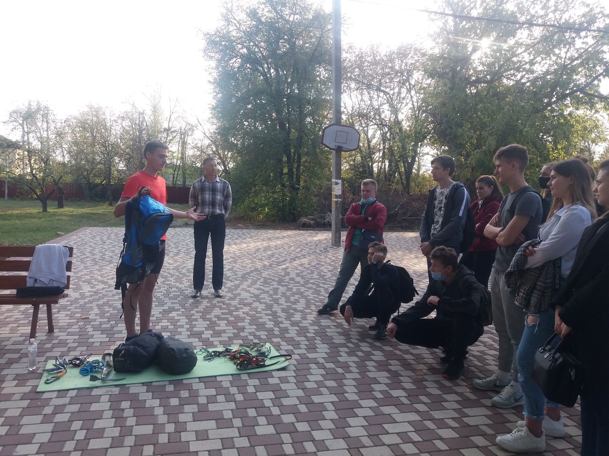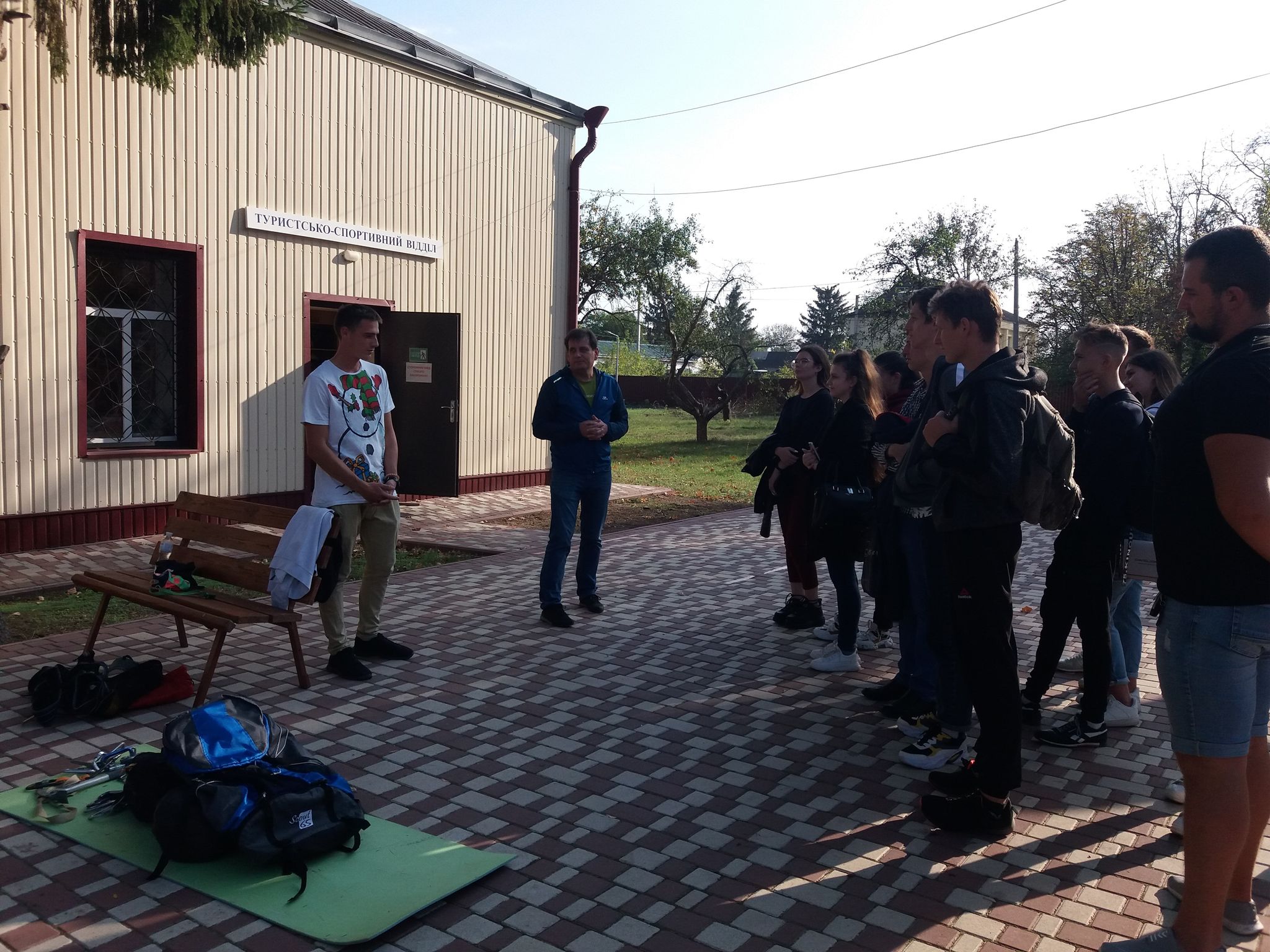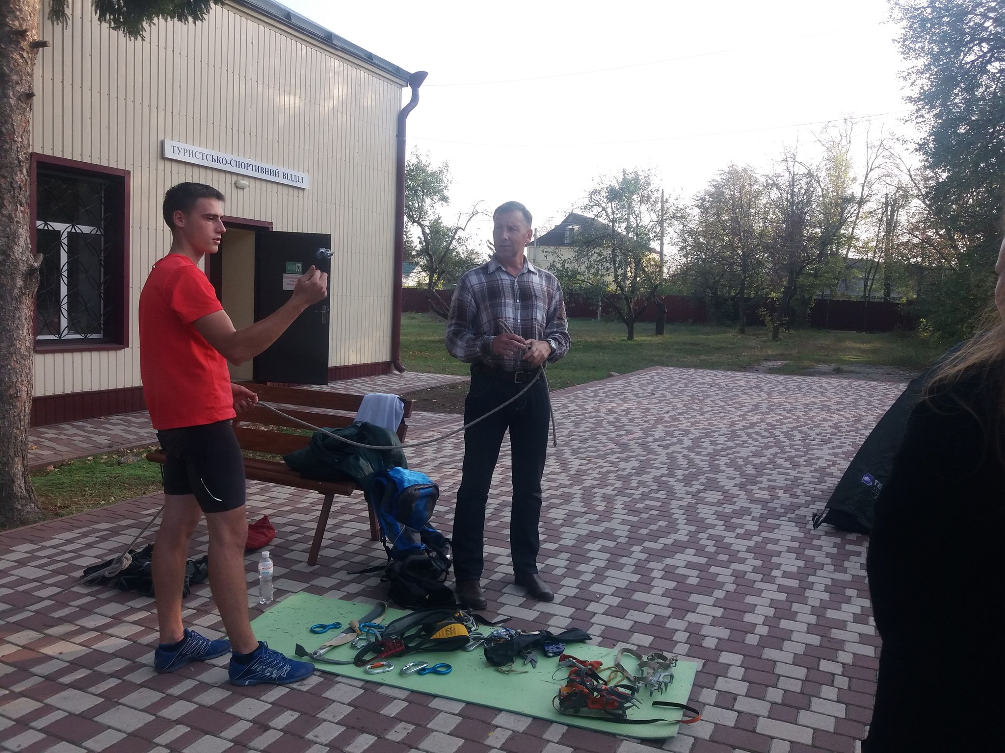 Методист центру, керівник гуртка зі спортивного туризму, випускник освітньо-професійної програми «Середня освіта (географія) та краєзнавчо-туристична робота» ЦДПУ ім. В. Винниченка Назаренко Данило Юрійович та інструктор з туризму Конюх Юрій Миколайович продемонстрували студентам основне і спеціальне туристське спорядження, розповіли про вимоги до нього, призначення і особливості безпечного використання. Студенти працювали з різним туристським спорядженням, спробували свої сили на скеледромі.